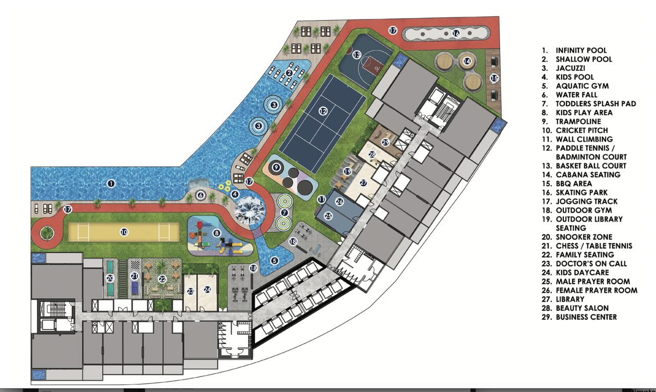 Diamondz by Danube offers more than just luxury living; it provides a lifestyle of unparalleled convenience and leisure. With over 42 amenities, residents can indulge in a wide range of recreational activities without ever leaving the premises. From a jogging track to swimming pools for relaxation to cricket pitches, every aspect of Diamondz is designed to cater to the diversity of its residents. The tower has dedicated parking spaces, ensuring convenience and security for residents and their guests.