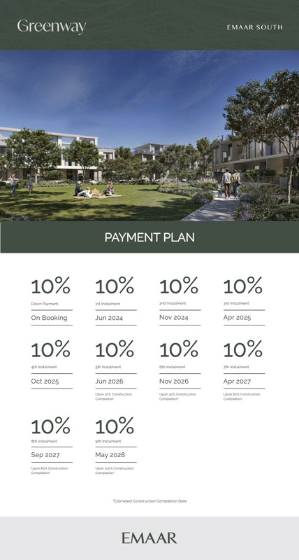 Securing your dream home in Dubai South is straightforward with a simple payment plan: pay 90% during construction and the remaining 10% upon completion. Anticipate the completion of Greenway by May 2028, presenting a prime opportunity to invest in Dubai’s flourishing real estate market. Starting prices for three-bedroom villas are from AED 3.1m and four-bedroom villas from AED 3.6m—offering exceptional value under $1m. Compared to Golf Links, another notable project within Emaar South, Greenway provides the most spacious living environments for 3 and 4-bedroom villas in Dubai South. If you’re looking to buy a villa in Dubai, Greenway offers a lucrative opportunity for those searching for villas for sale in Dubai with expansive living spaces.