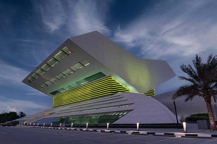 The Mohammed Bin Rashid Library, situated in Dubai’s Al Jaddaf locality, is a striking architectural marvel resembling a traditional wooden book rest, or “rehl.” Opened to the public on June 16, 2022, it accommodates up to 1000 visitors at once across its nine libraries. The vast catalog boasts over 1.1 million printed and digital books, 6 million dissertations, 73,000 musical scores, 75,000 videos, and various historical acquisitions. The library is environmentally conscious, featuring solar panels for 10% of its energy needs and water reuse initiatives.