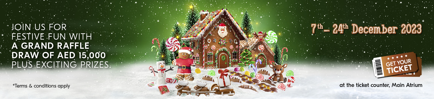 Dive into the festive spirit with a holiday season that sparkles like a winter wonderland of sweets. Another well known Dubai festive hotspot, embark on a magical journey at Wafi, where children can discover the enchanting realm of sugary celebrations. Meet Santa’s little helpers, gigantic gingerbread men, a real gingerbread house, a gigantic Christmas tree and Meet Santa and ask him for the gifts your heart desires!