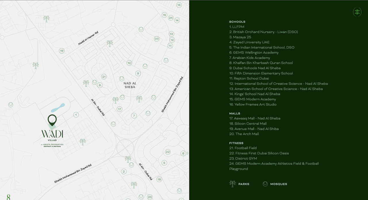 Burrowed within Meydan’s esteemed district 11 community, Wadi Villas is immaculately designed by the infamous HBA Architecture Group and landscaped by the renowned London based Coopers Hill. The project offers a limited collection of only 30 unique villas, each home is designed for discerning buyers seeking sophistication and comfort in a private green enclave within the city.