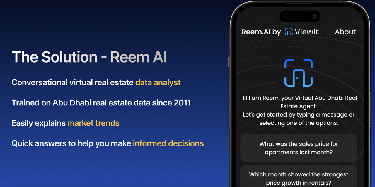 Reem AI was created when the core team at Viewit, Hamdan Mohammad and Iftekhar Ahmed, where the top 10 finalists in the Open Data Spark Hackathon in Abu Dhabi and had to create an innovative, creative and AI based solution using Abu Dhabis open data sets.