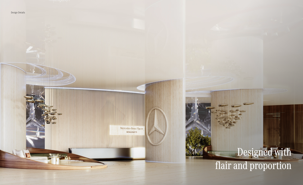Located in Business Bay, a stones throw away from Downtown Dubai and opposite Trillionaire Residences by Binghatti, Mercedes Benz Places is defined as an epochal architectural symbol. The use of intricate strokes, mingled with the iconic pattern of the Mercedes-Benz three-pointed star create a form that lives and breathes the spirit of Mercedes Benz.